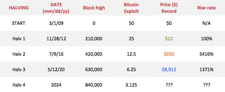 • Halving by block height: This simple rule is based on the block counter, until a certain number of Halvings will occur, typical for this rule is Bitcoin, this network will have a Halving every 210,000 blocks. .