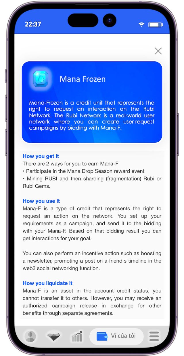 Mana-F is a token designed for campaign issuance and to secure the value of other interesting goods on the RUBI Network, it is only applicable in cases of use where implementation is not possible. direct transaction. However, when you own Mana-F you can still indirectly liquidate it by using it to provide campaigns to those in need in a free market.
